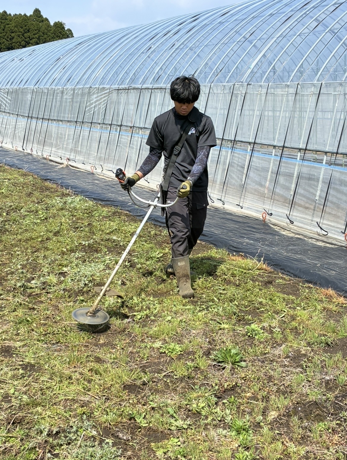 ハウス周りの草刈りをして害虫の予防に努めています。