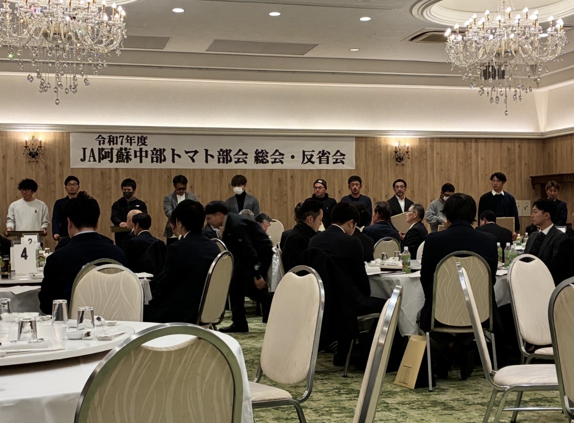 本日、JA阿蘇中部トマト部会反省会が行われました。そこで一反あたりの収量の部門である栽培技術部門で上位10名の中に役員と会社が入ることができました。何人入ったかは後日Youtubeにて発信しようと思います。今があるのは仲間や家族のおかげだと思います。