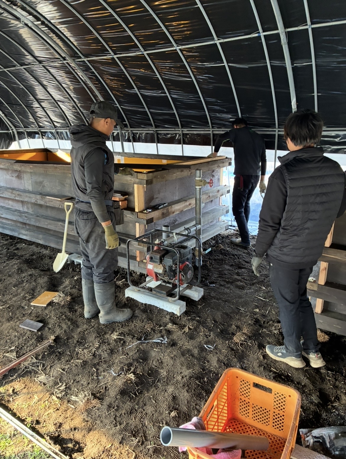 今日は研修生と配管工事をしました。エンジンポンプ周りはどう作るか難しいですが、イメージ通りにできると嬉しいです。
