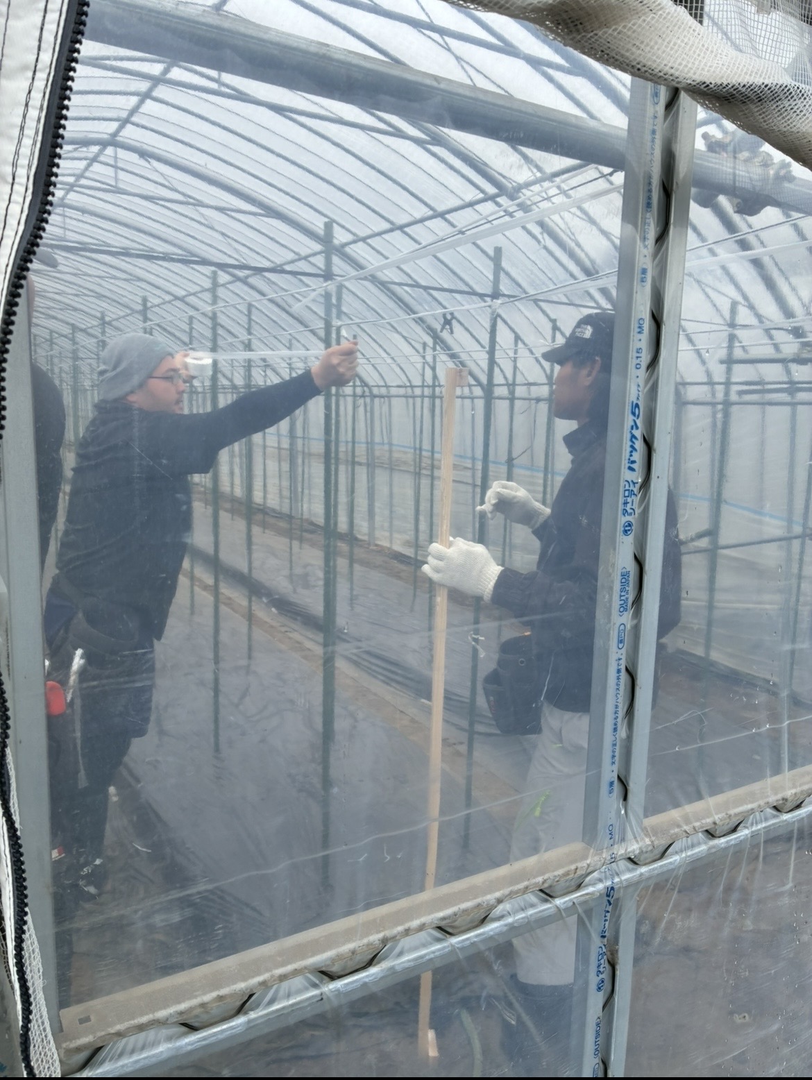本日はあいにくの雨となりました。ハウスの中は特に関係なく作業しています。