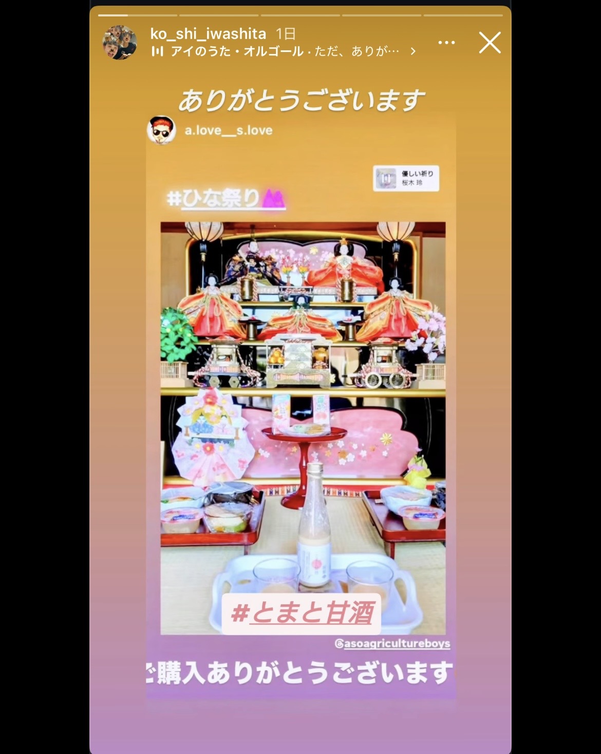 インスタグラムのフォロワーさんからおひな祭りにとまと甘酒を添えて下さりました。